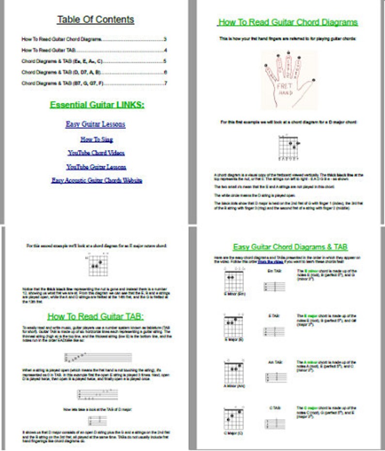 Essential Guitar Chords Diagrams Tab How To Play Guitar Etsy